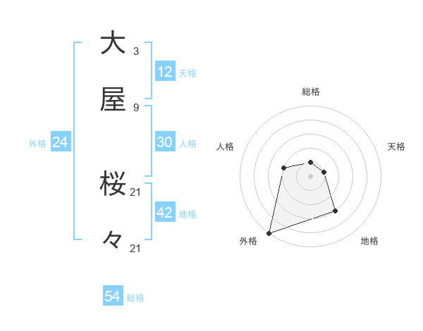 大屋 桜々さんの外格は24画の5点!