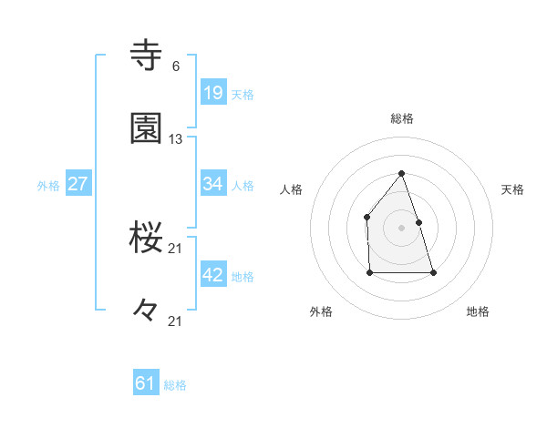 寺園 桜々さんの外格は27画の3点!
