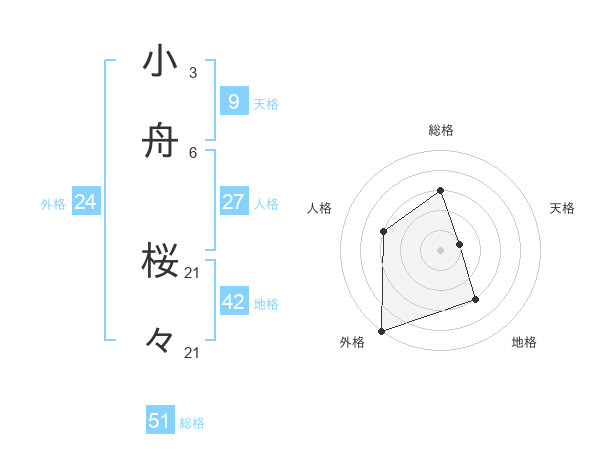 小舟 桜々さんを姓名の画数から五運を鑑定