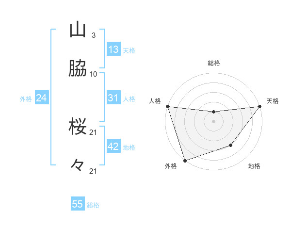 山脇 桜々さんを姓名の画数から五運を鑑定