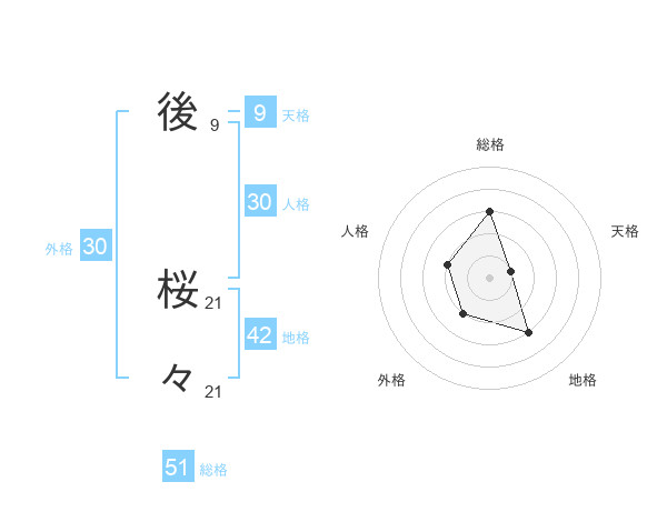 後 桜々さんの総格は51画の3点!
