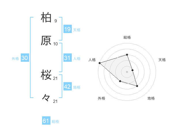 柏原 桜々さんを姓名の画数から五運を鑑定