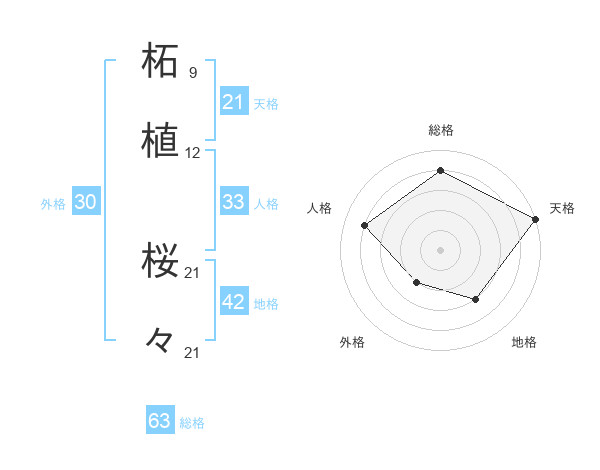 柘植 桜々さんの総格は63画の4点!