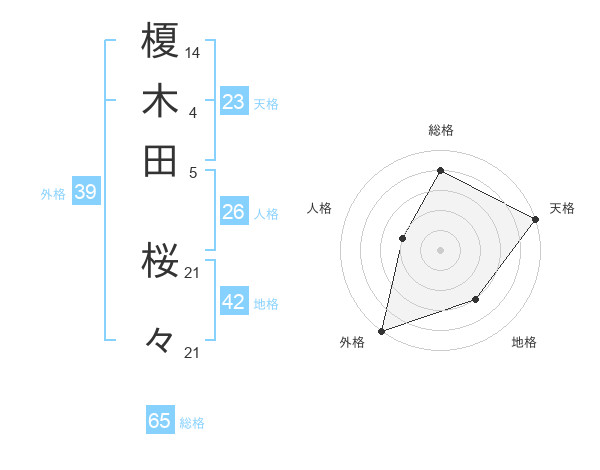 榎木田 桜々さんの総格は65画の4点!