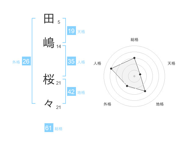 田嶋 桜々さんを姓名の画数から五運を鑑定