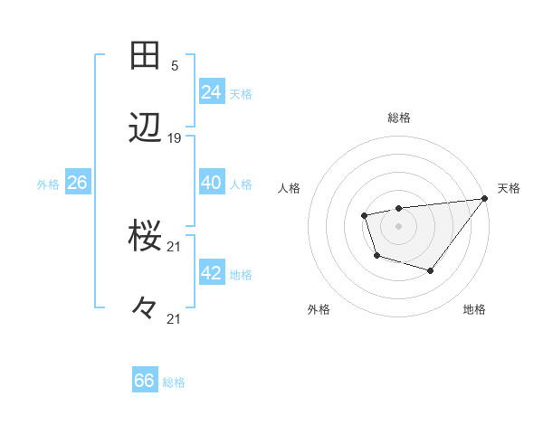 田辺 桜々さんの天格は24画の5点!
