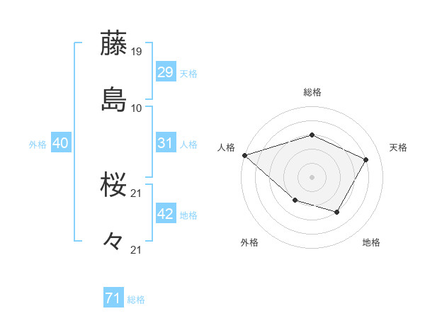 藤島 桜々さんを姓名の画数から五運を鑑定