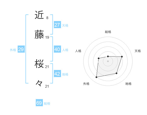 近藤 桜々さんを姓名の画数から五運を鑑定