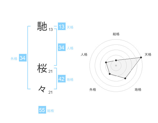 馳 桜々さんの総格は55画の1点!