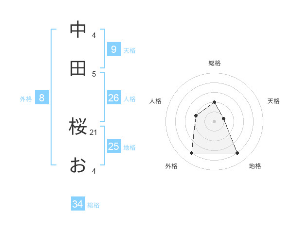 中田 桜おさんの外格は8画の4点!