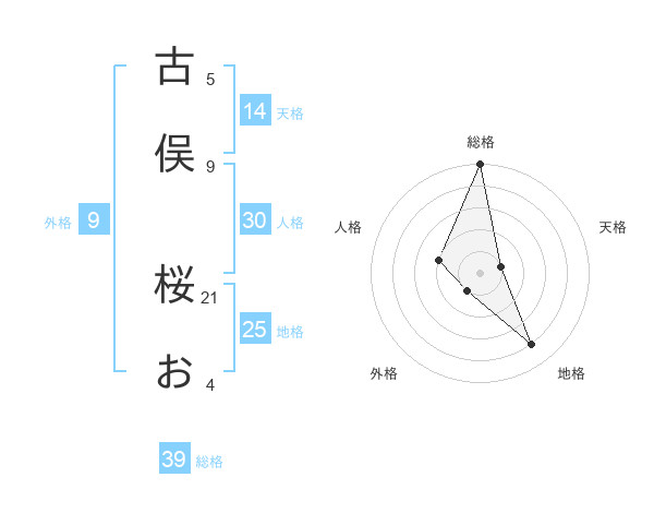 古俣 桜おさんを姓名の画数から五運を鑑定
