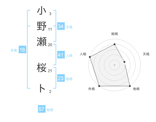 小野瀬 桜トさんを姓名の画数から五運を鑑定