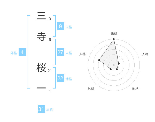 三寺 桜一さんを姓名の画数から五運を鑑定