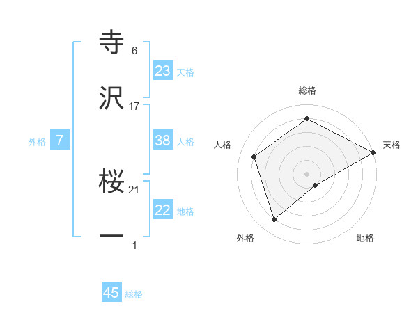 寺沢 桜一さんの総格は45画の4点!