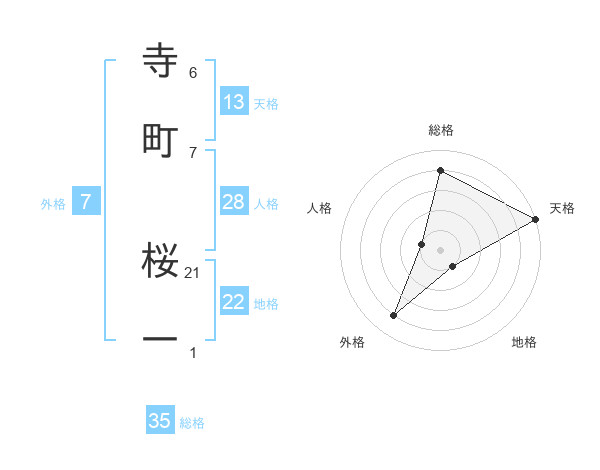 寺町 桜一さんの天格は13画の5点!