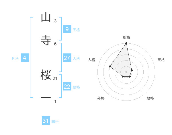 山寺 桜一さんの総格は31画の5点!