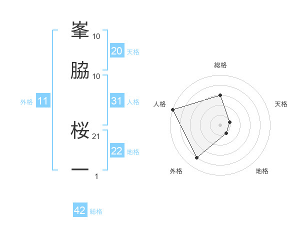 峯脇 桜一さんの総格は42画の3点!
