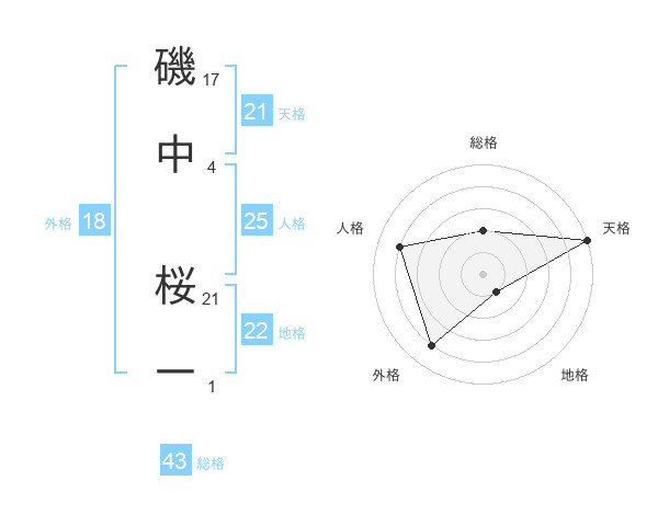 磯中 桜一さんの天格は21画の5点!