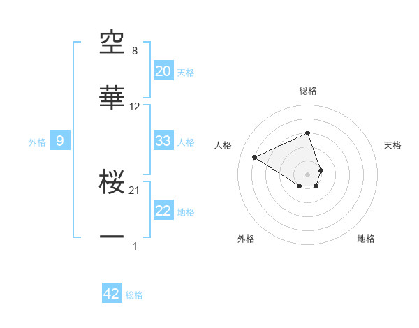 空華 桜一さんの地格は22画の1点!