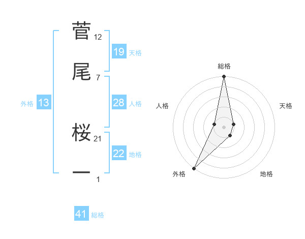 菅尾 桜一さんの外格は13画の5点!