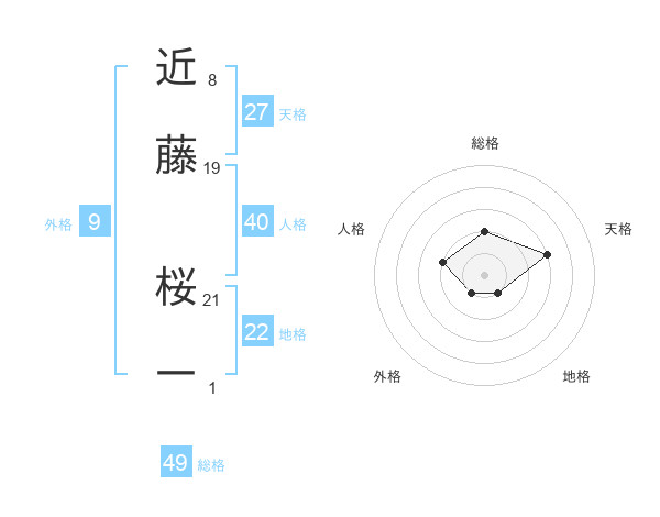 近藤 桜一さんを姓名の画数から五運を鑑定