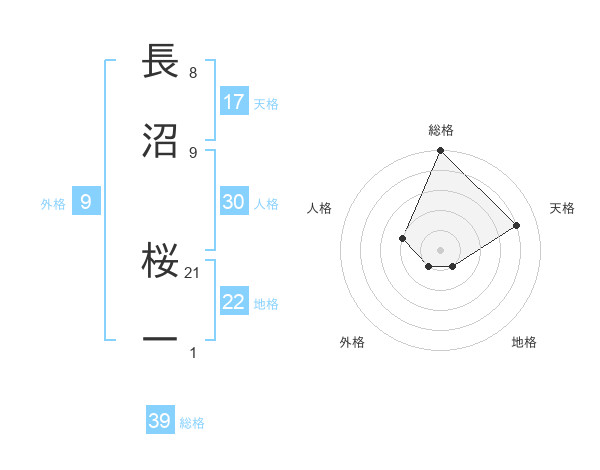 長沼 桜一さんを姓名の画数から五運を鑑定