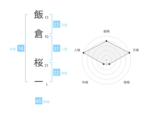 飯倉 桜一さんの総格は45画の4点!