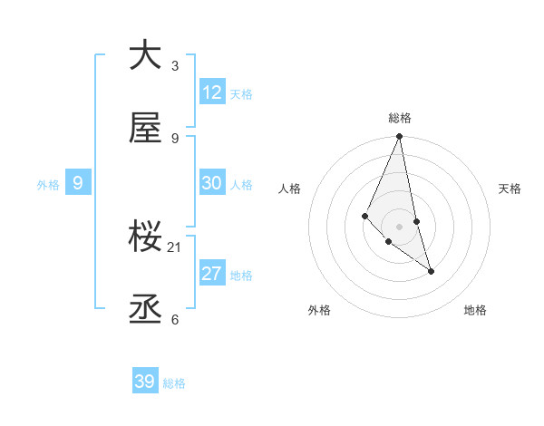大屋 桜丞さんを姓名の画数から五運を鑑定