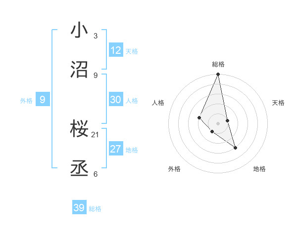 小沼 桜丞さんの総格は39画の5点!