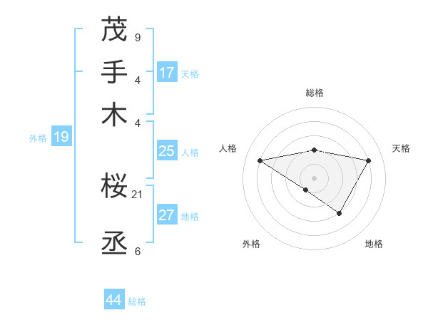 茂手木 桜丞さんの天格は17画の4点!