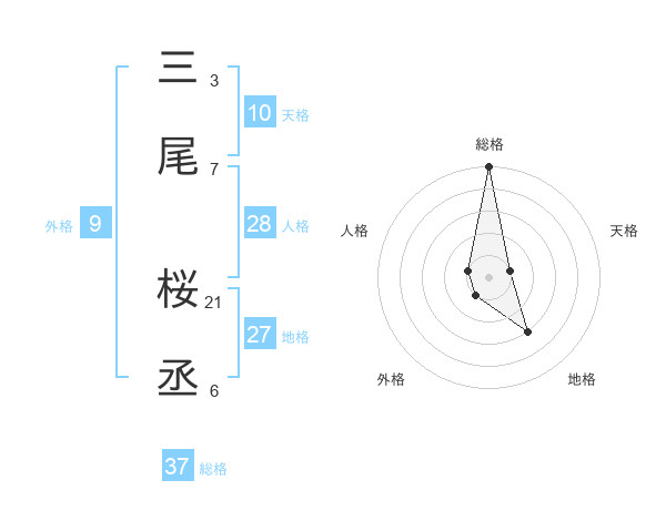 三尾 桜丞さんを姓名の画数から五運を鑑定