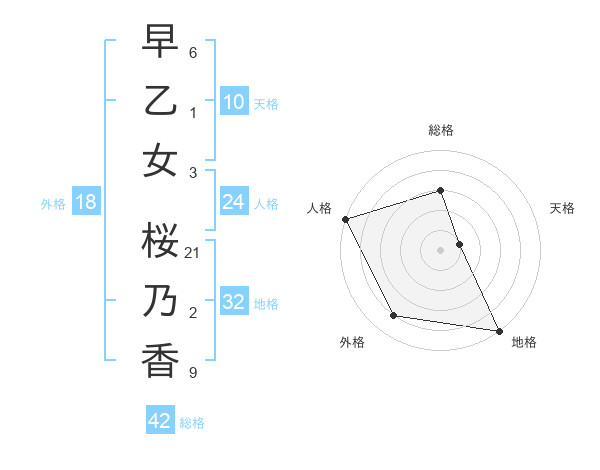 早乙女 桜乃香さんの総格は42画の3点!