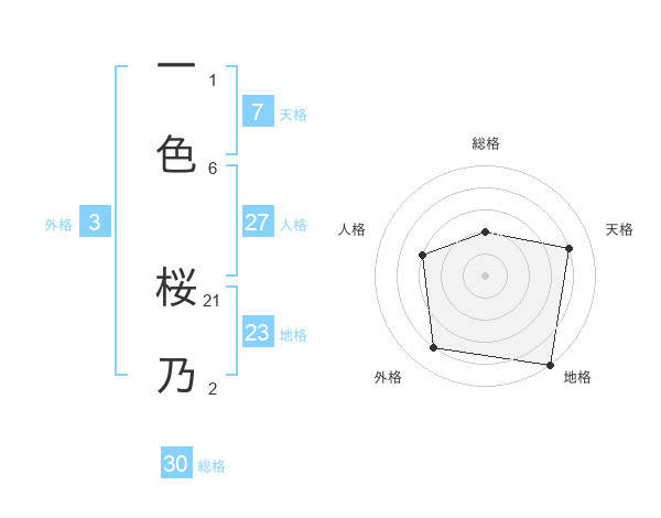 一色 桜乃さんを姓名の画数から五運を鑑定