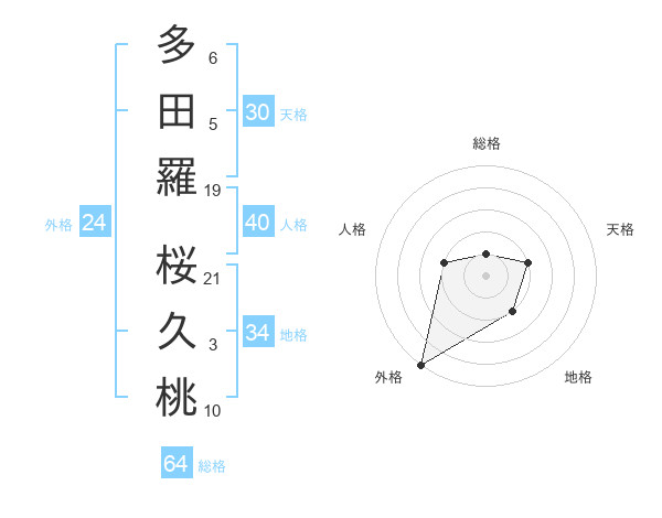 多田羅 桜久桃さんを姓名の画数から五運を鑑定