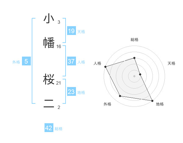 小幡 桜二さんの総格は42画の3点!