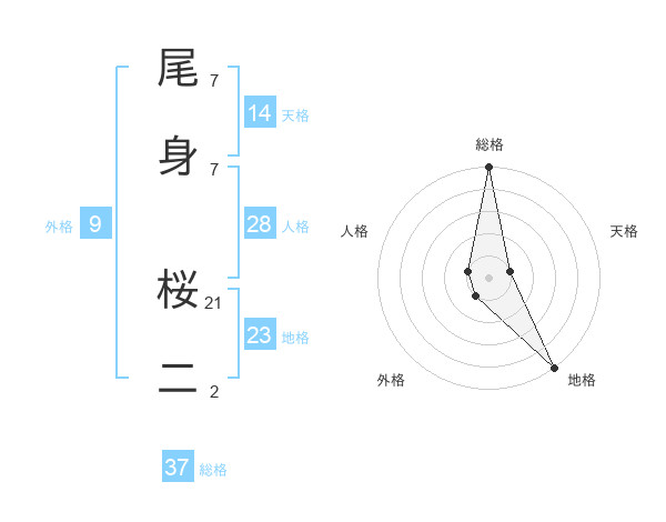 尾身 桜二さんの総格は37画の5点!