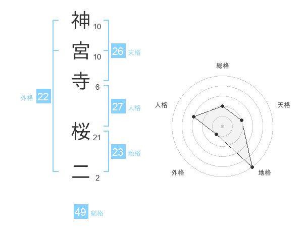 神宮寺 桜二さんの総格は49画の2点!