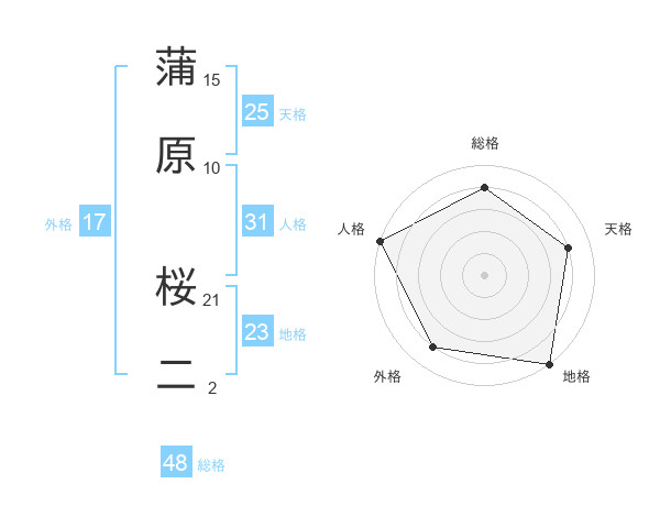 蒲原 桜二さんの地格は23画の5点!