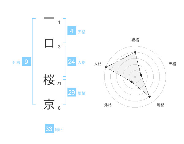 一口 桜京さんの地格は29画の4点!