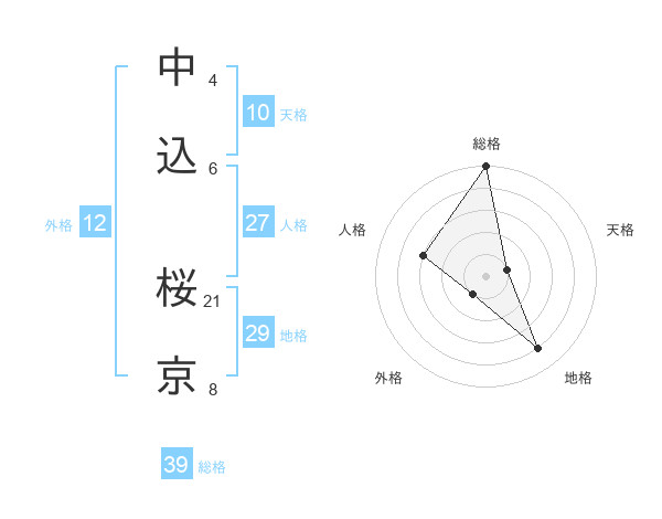 中込 桜京さんの総格は39画の5点!