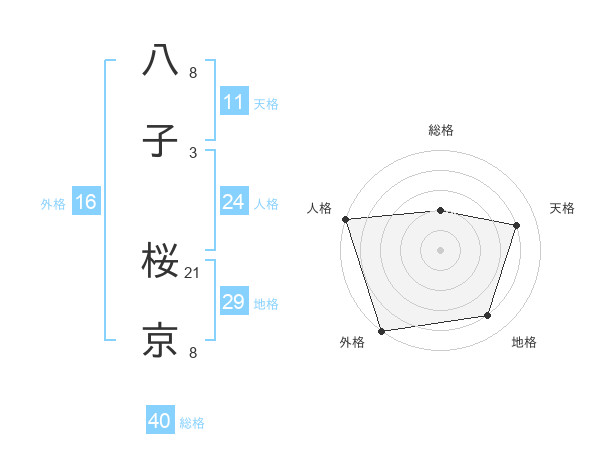 八子 桜京さんの総格は40画の2点!