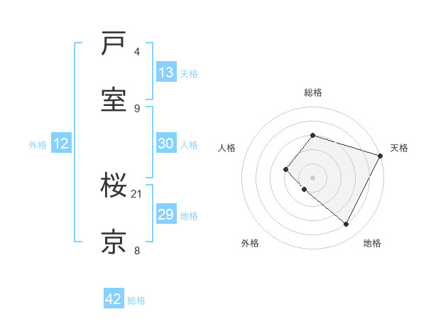 戸室 桜京さんの総格は42画の3点!
