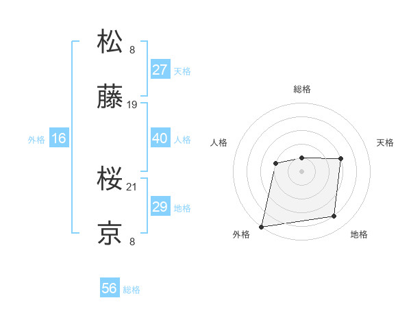 松藤 桜京さんを姓名の画数から五運を鑑定