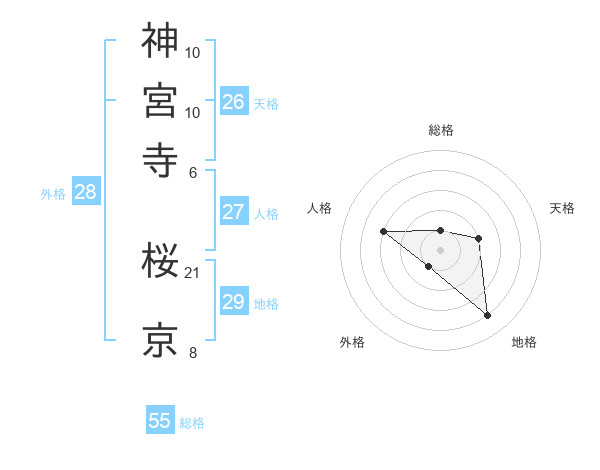 神宮寺 桜京さんを姓名の画数から五運を鑑定