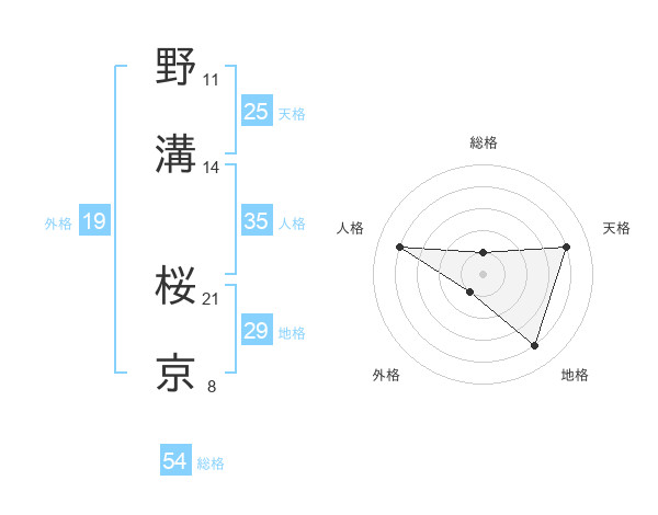 野溝 桜京さんを姓名の画数から五運を鑑定