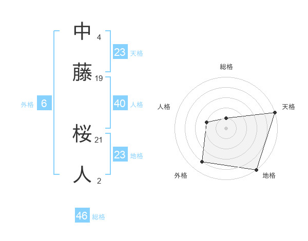 中藤 桜人さんの天格は23画の5点!