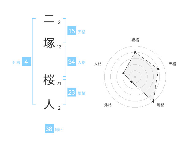 二塚 桜人さんの総格は38画の4点!