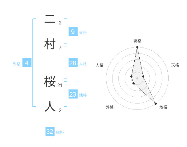 二村 桜人さんの総格は32画の5点!