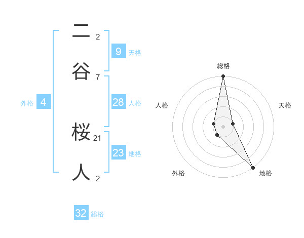 二谷 桜人さんの総格は32画の5点!
