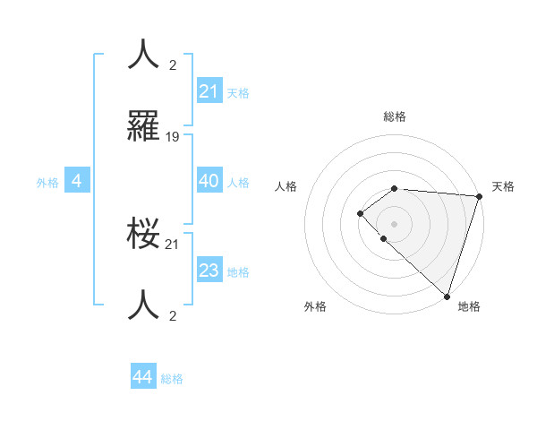 人羅 桜人さんを姓名の画数から五運を鑑定